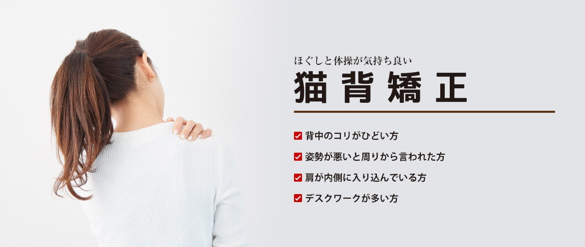 猫背は肩が内側に入り込み背中が丸くなって腰は後ろに出ているような状態のことを言います。